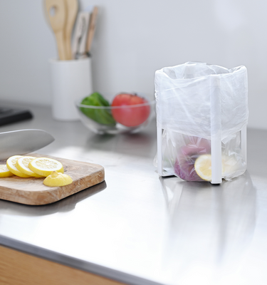 With its unique, modern design, it makes everyday kitchen tasks effortless. Simply hang a bag—an instant, sleek trash bin.Also perfect for drying glasses or transferring ingredients.
