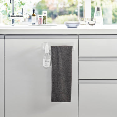 A kitchen series that can be easily stored by hanging on film hooks. It can also be used for sprays or towels. You can attach it in any vertical or horizontal orientation you prefer. It can be attached to glossy wall surfaces, glossy sink doors, glass doors, and tiles. All you need to do is hang it on the film hook.