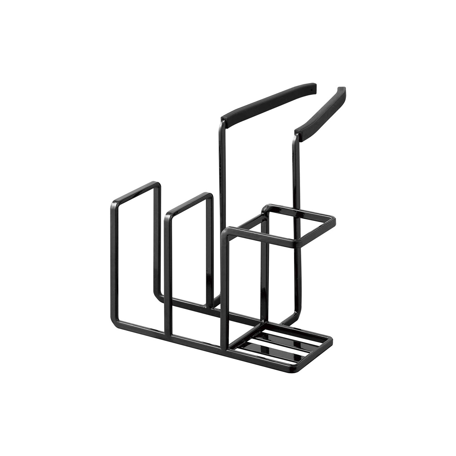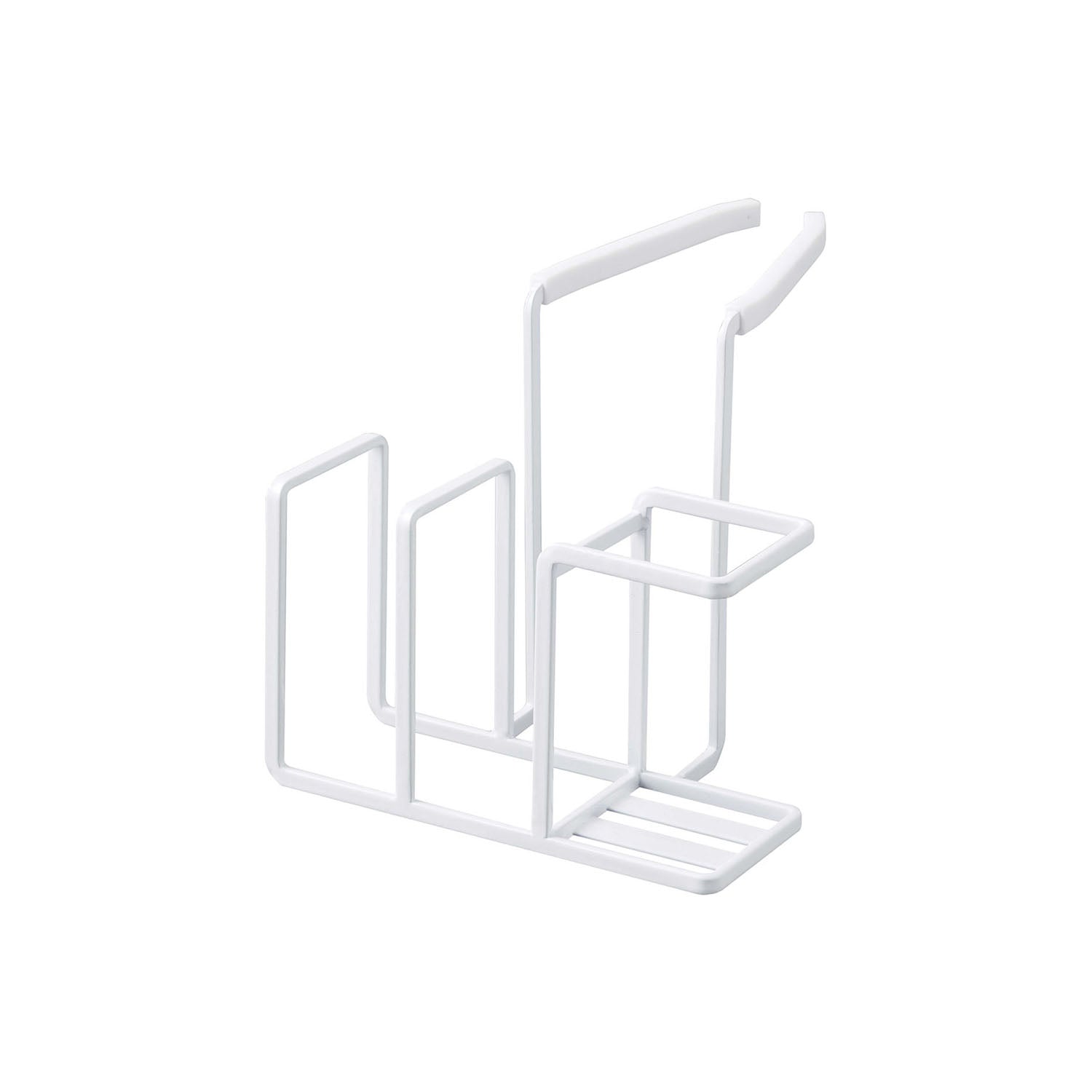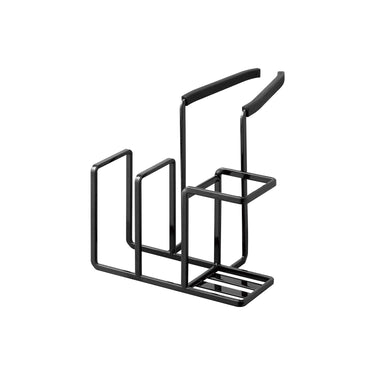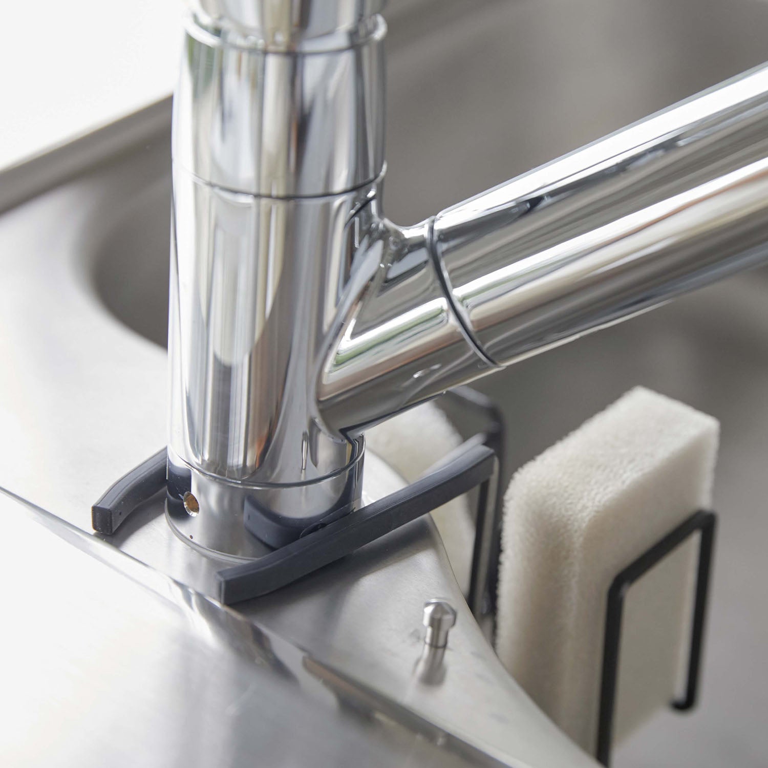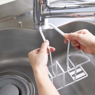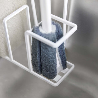 Easy to install, just by clamping it on. The steel attachment holds firmly, ensuring it doesn't slip off and allows for comfortable use. It comes with a silicone cover, so there's no risk of scratching your tap or sink. Conveniently store your frequently used bottle brush and two sponges all in one place! It can also accommodate other items such as a drain brush.