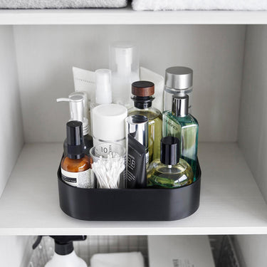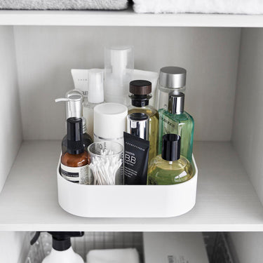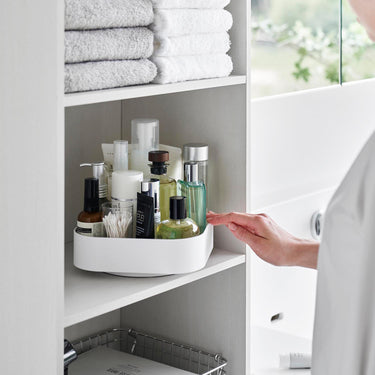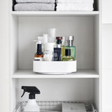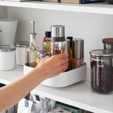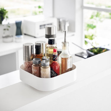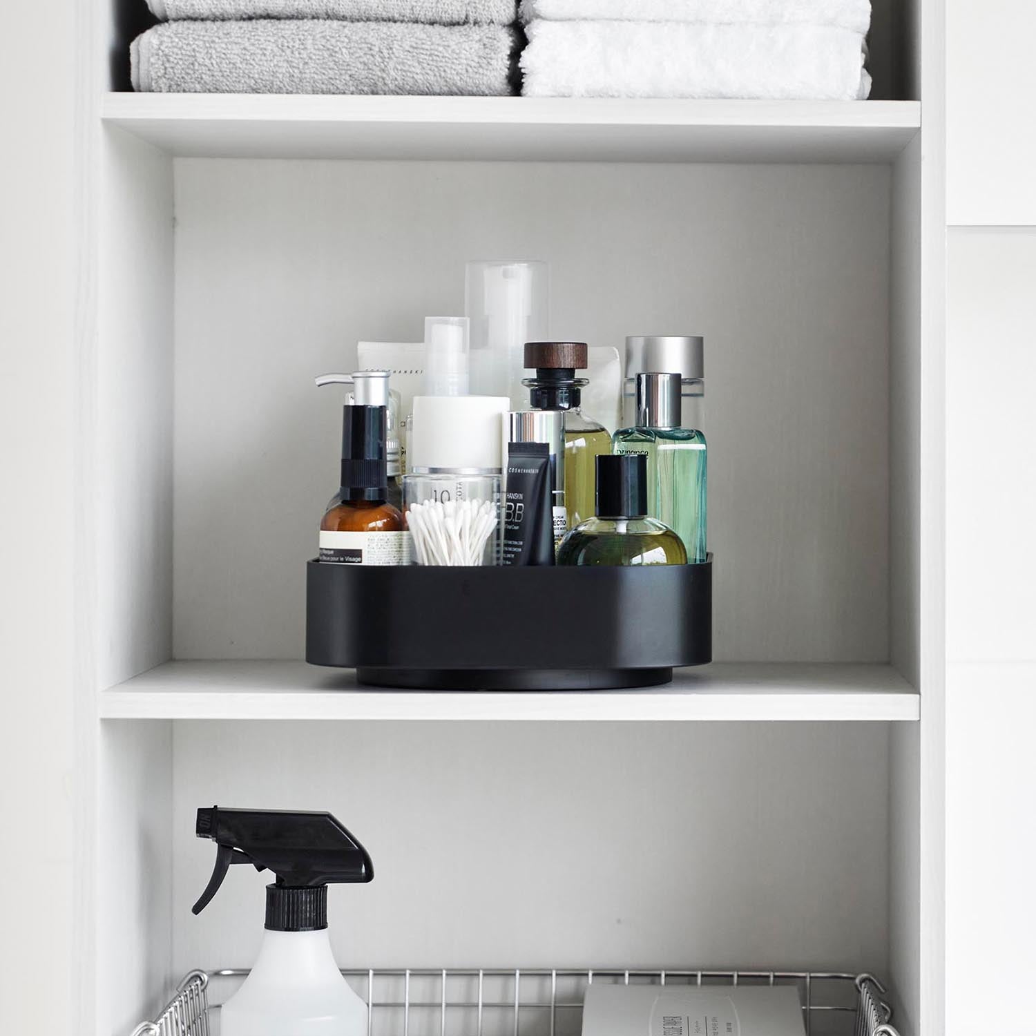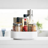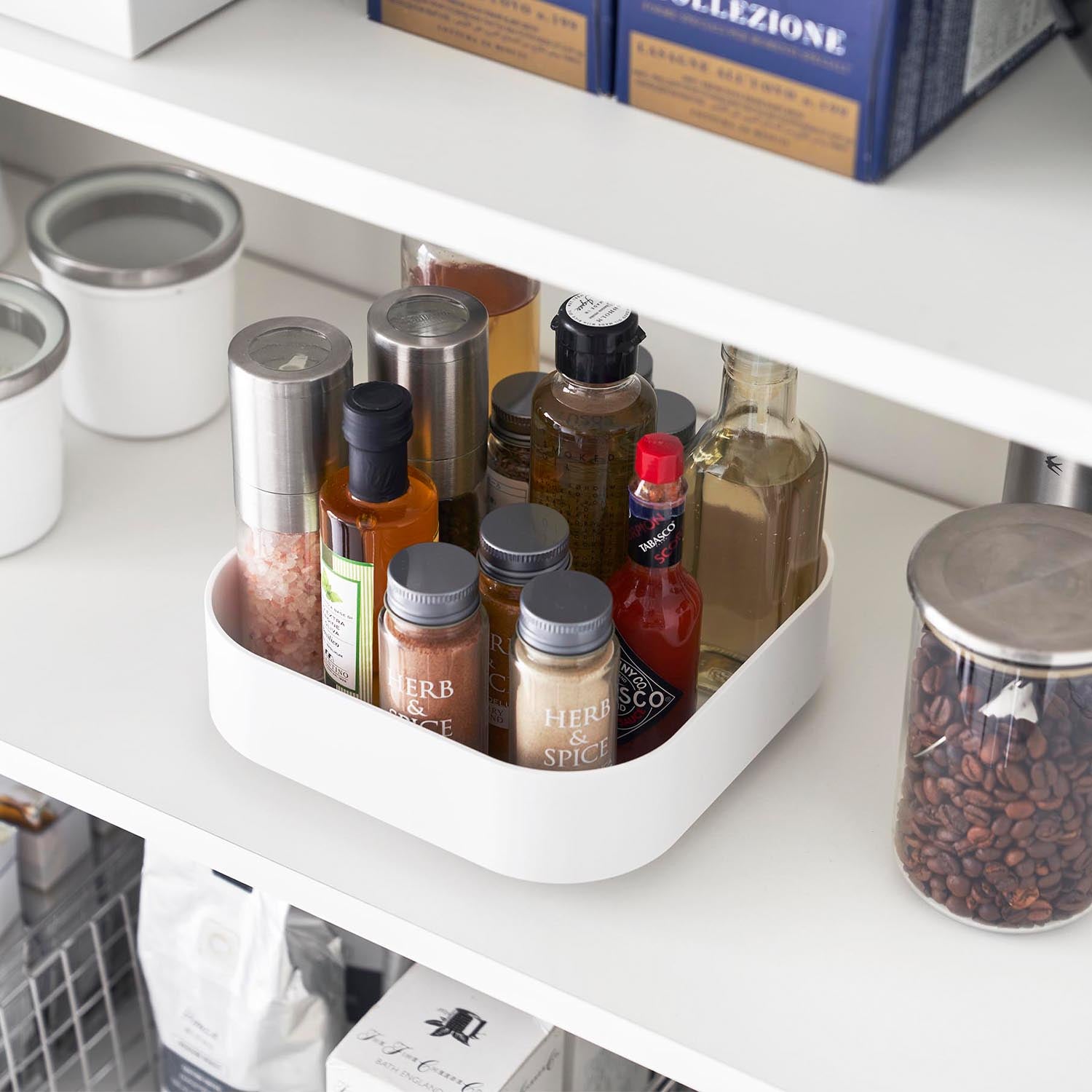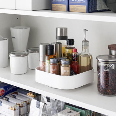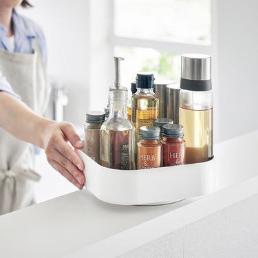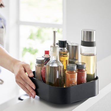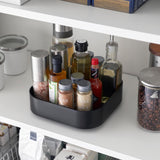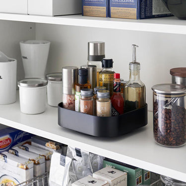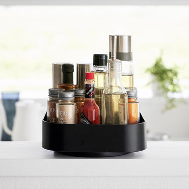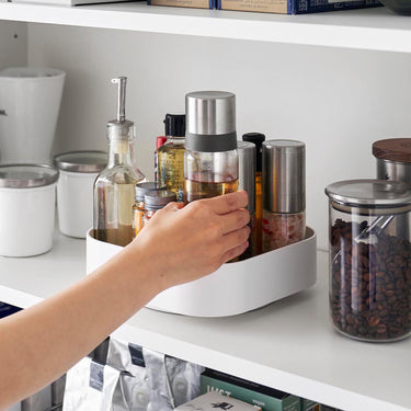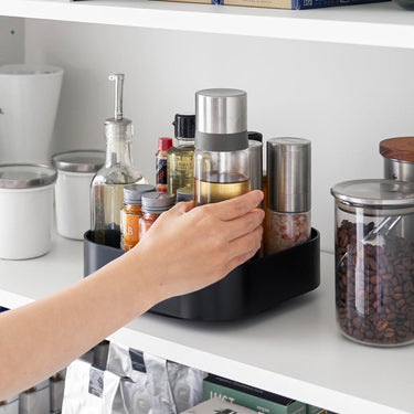This rack smoothly rotates without stress, even when storing heavy items like bottles, making it easy to retrieve items even from high places. You can move the rack to a table or counter, and it can be conveniently stored as it is in a cupboard or pantry. The bottom surface has a non-slip feature, so it won't move even when the tray is rotated. It's perfect for easily retrieving spices with a simple twist, or for storing cosmetics and skincare products that tend to clutter, making it highly versatile.