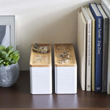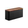 A set of three slim cases of the same size and a wooden lid that doubles as a tray.