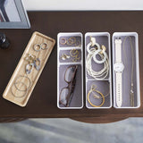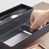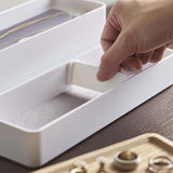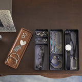 A slim accessory case with a tray, perfect for tucking into those nooks and crannies at home.
