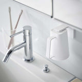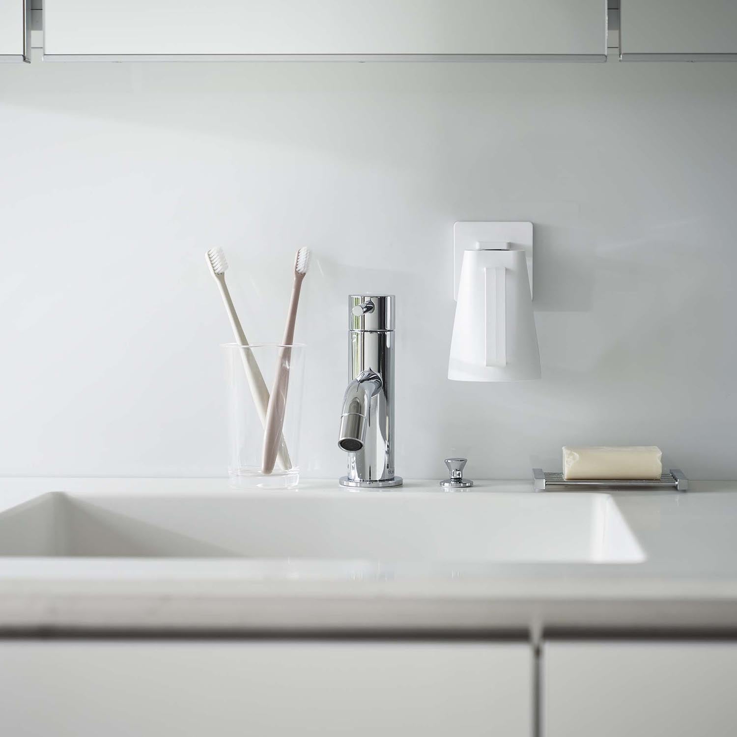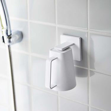 The tumbler stays sanitary as it floats in mid-air, preventing any sliminess. It can be easily attached to tiles or glossy walls with a film hook. The tumbler can be simply stored away with a magnet.