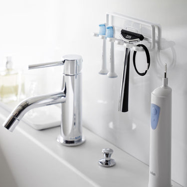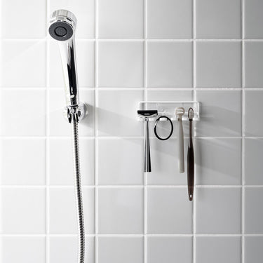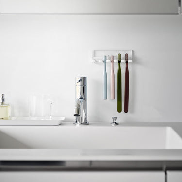 Keeps your toothbrushes hygienic by suspending them in the air, preventing any sliminess. Easily attachable to glossy wall surfaces with a film hook. Also suitable for storing electric toothbrush replacements and shavers. Can be attached to tiles. Can also be used to hang small items such as hair ties.