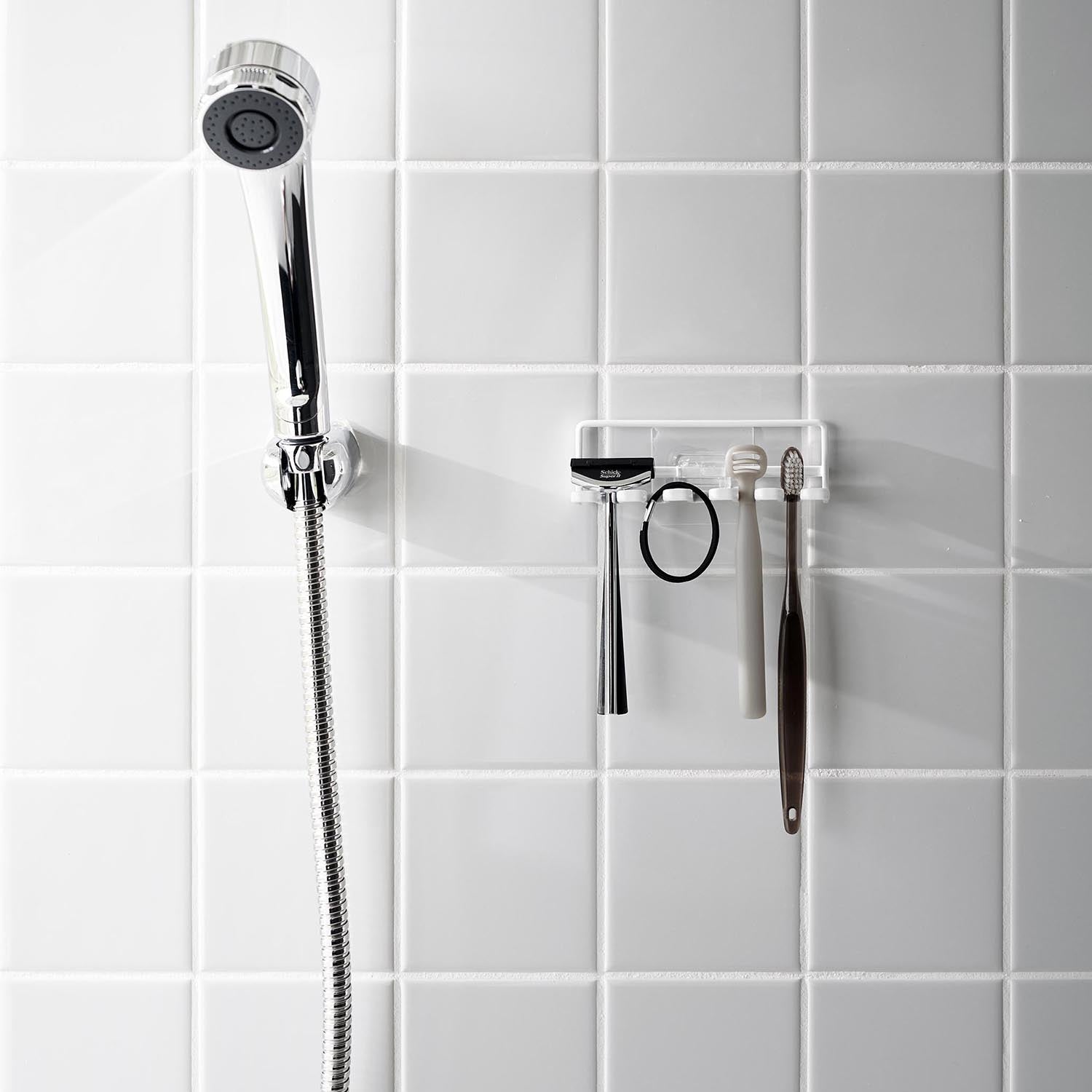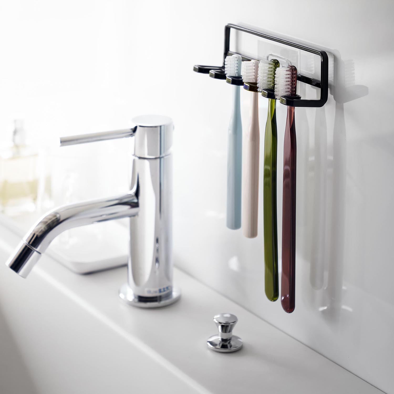 Easily attach this 5-hook toothbrush holder at your preferred position with a film hook!