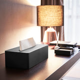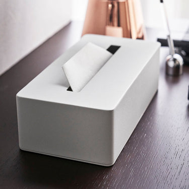 A tissue box with a beautiful, simple form and the quality feel of pear skin texture.