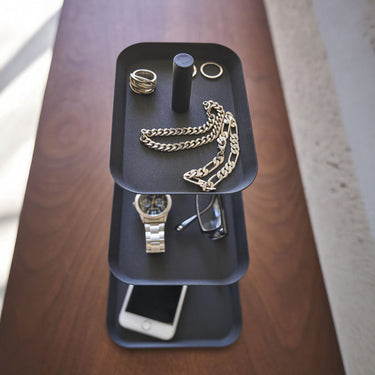 The tray comes with three tiers in small, medium, and large sizes. This allows you to organise your items according to type, size, and purpose.
