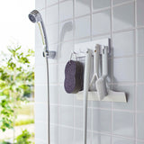 Can also be attached to tiles. Ideal for storing cleaning tools and care products.