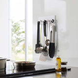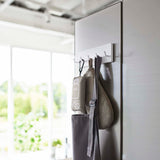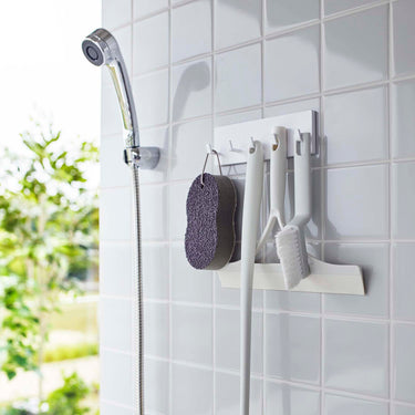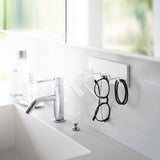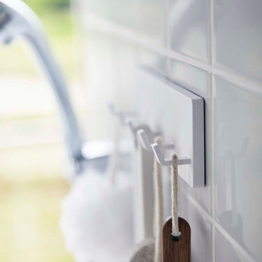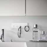 Store your toothbrush, interdental brush, and toothpaste tube all in one place. By suspending items like your toothbrush, it prevents them from getting slimy and maintains hygiene. It can also be attached to tiles and is perfect for storing cleaning tools and care products. It can even be attached to the glass panel of your fridge. Attach the hook to the bottom surface to hang small items like hair ties. Easily attach it to glossy wall surfaces with the film hook.