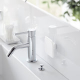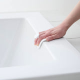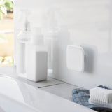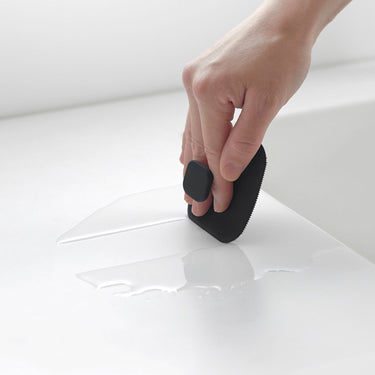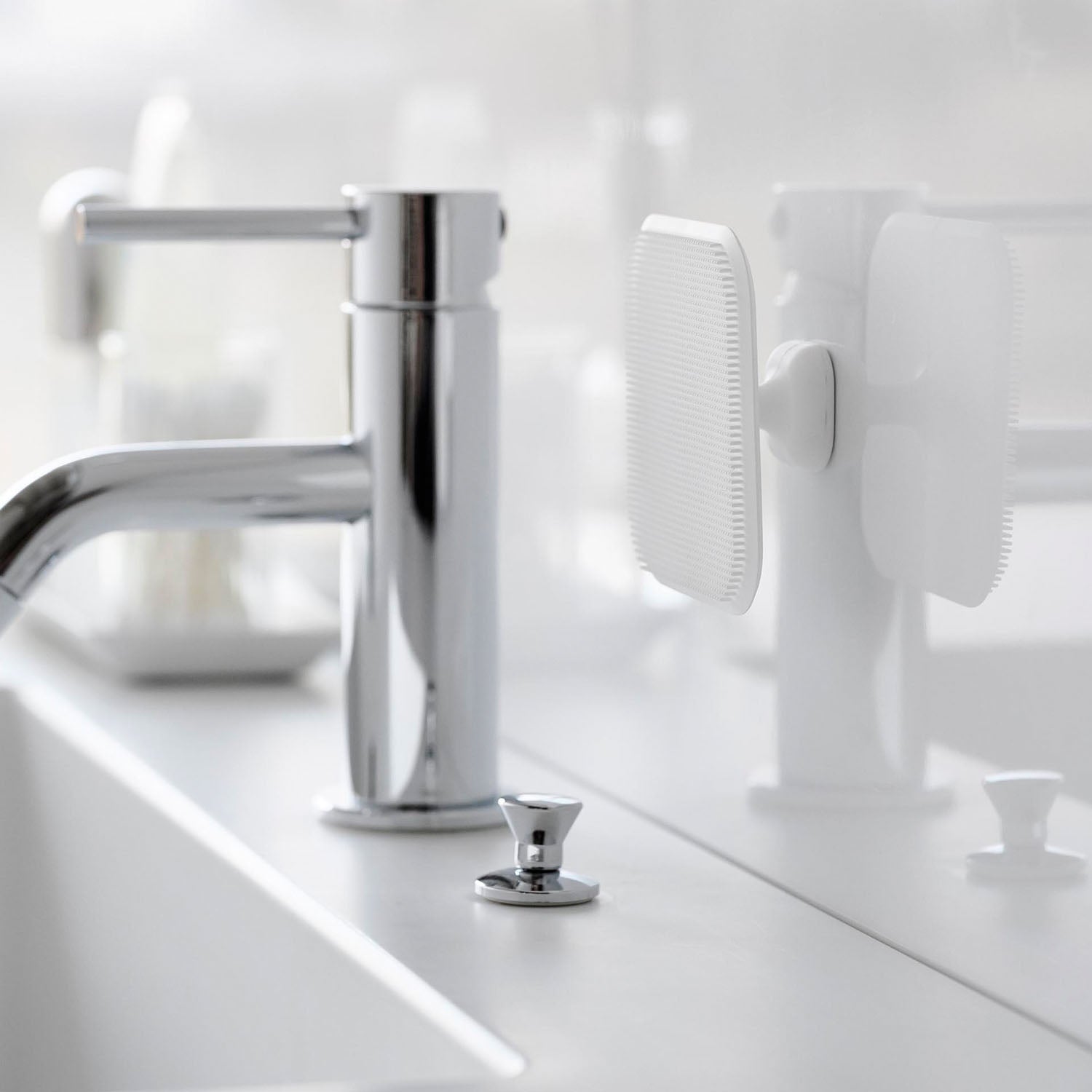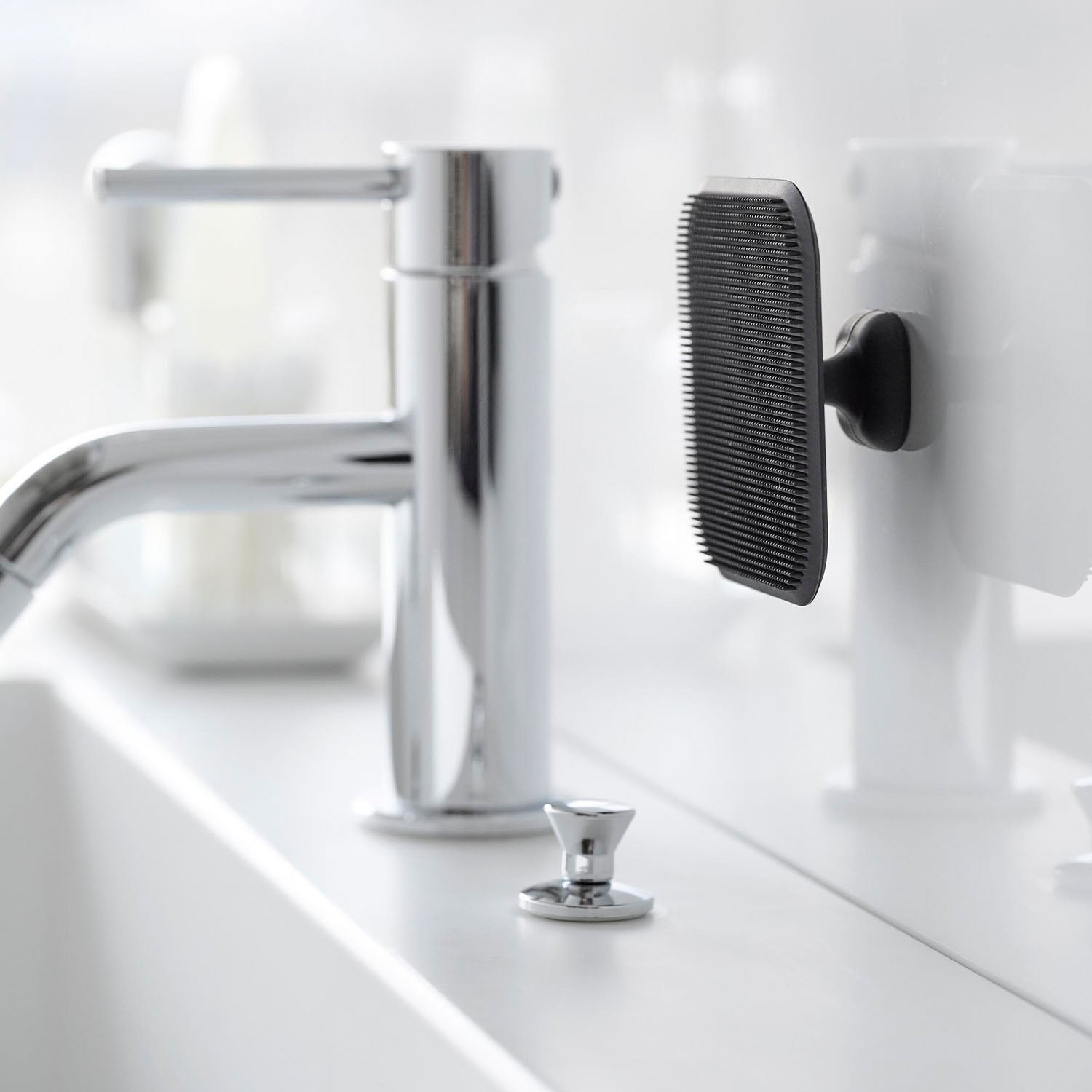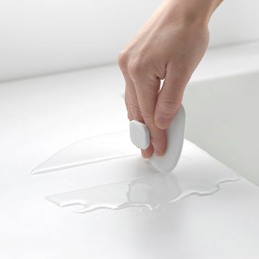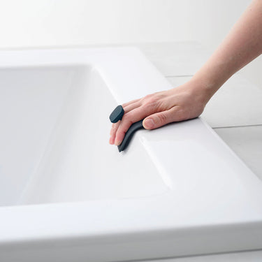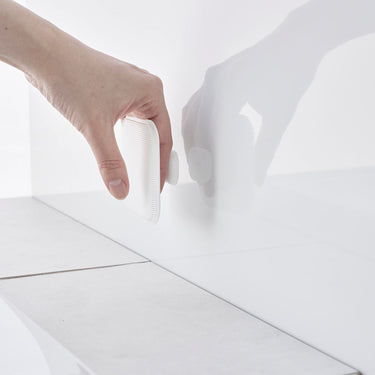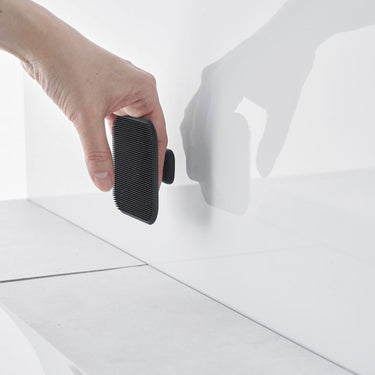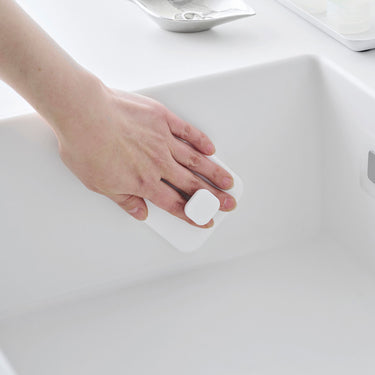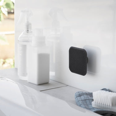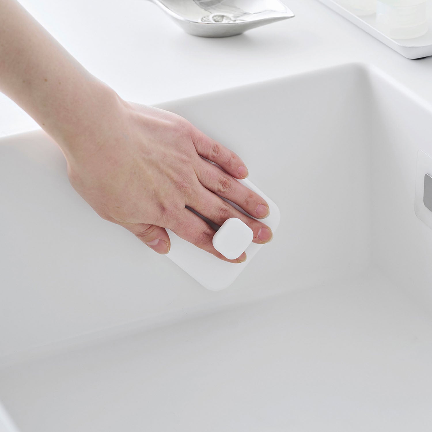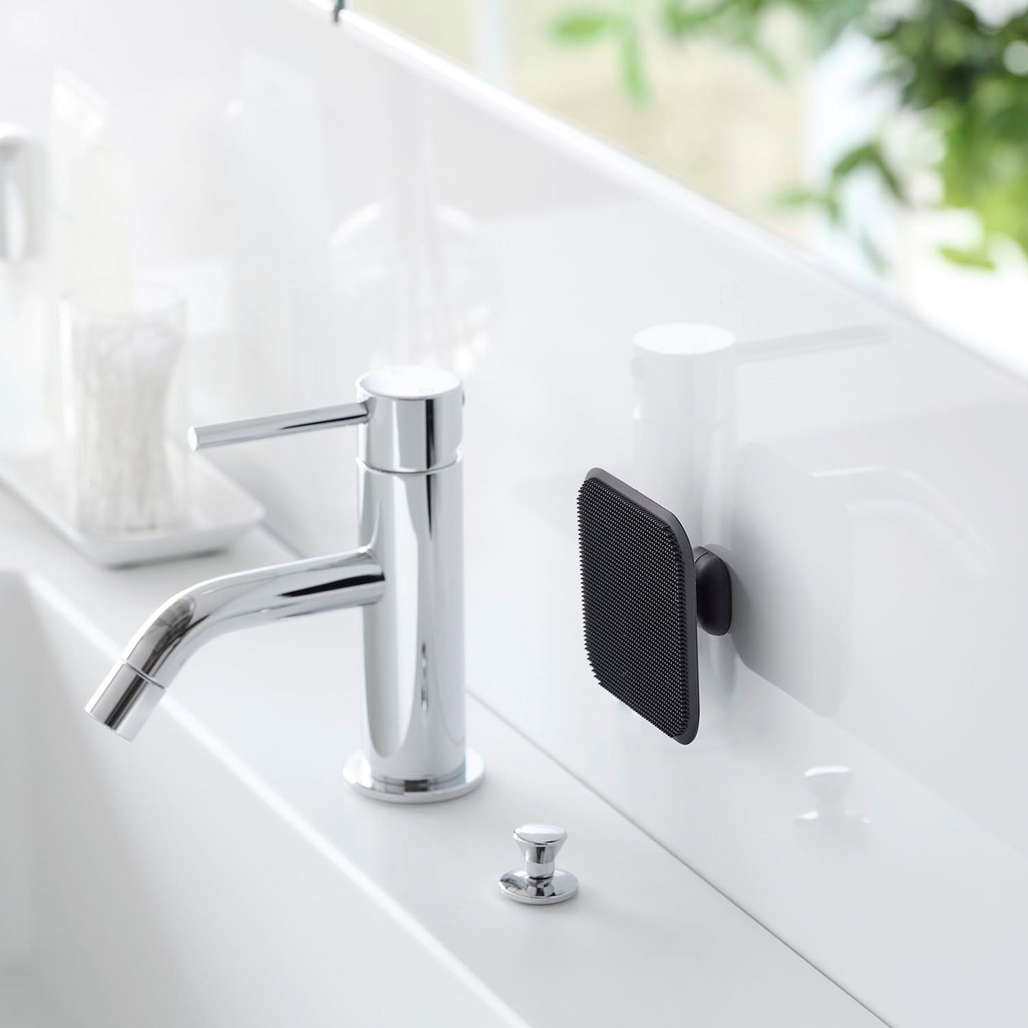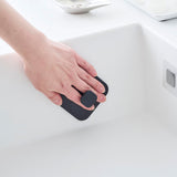 This is a flexible, easy-to-handle silicone sponge. With its magnetic feature, you can conveniently store it on the wall and grab it quickly when you spot a mess! It fits smoothly along curves, ensuring a thorough clean around your washbasin. It also doubles as a squeegee, perfect for draining water around your sink. When stored, the sponge doesn't touch the wall, making it a hygienic choice.
