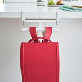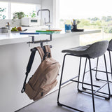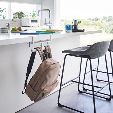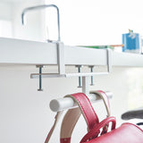A schoolbag storage hanger that can be attached to study desks or kitchen countertops