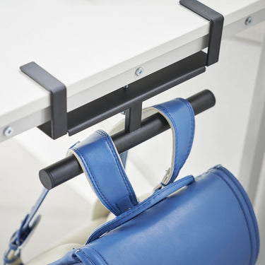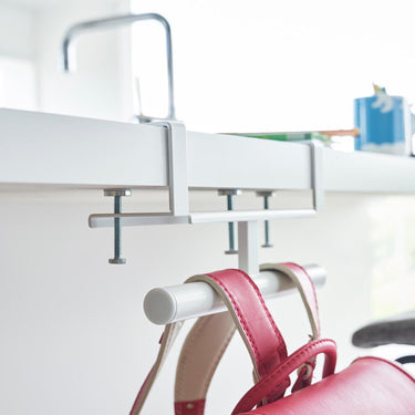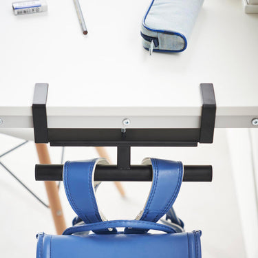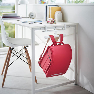 You can attach it next to your desk to store your school bag. It can also be attached to a tabletop with a step or a pipe using the adjustable screws. As it is secured with adjustable screws, there is no need to drill holes for installation. You can add school bag storage to your study area, desk, or kitchen counter as needed. It's also handy for storing backpacks. If you attach it under the kitchen counter top, you can do household chores while watching your child's homework. It can be firmly fixed with three adjustable screws. It's convenient as you can take out your study tools while your school bag is still hanging.