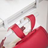A handy school bag and backpack storage hanger that can be installed using adjustable screws.
