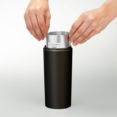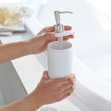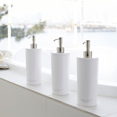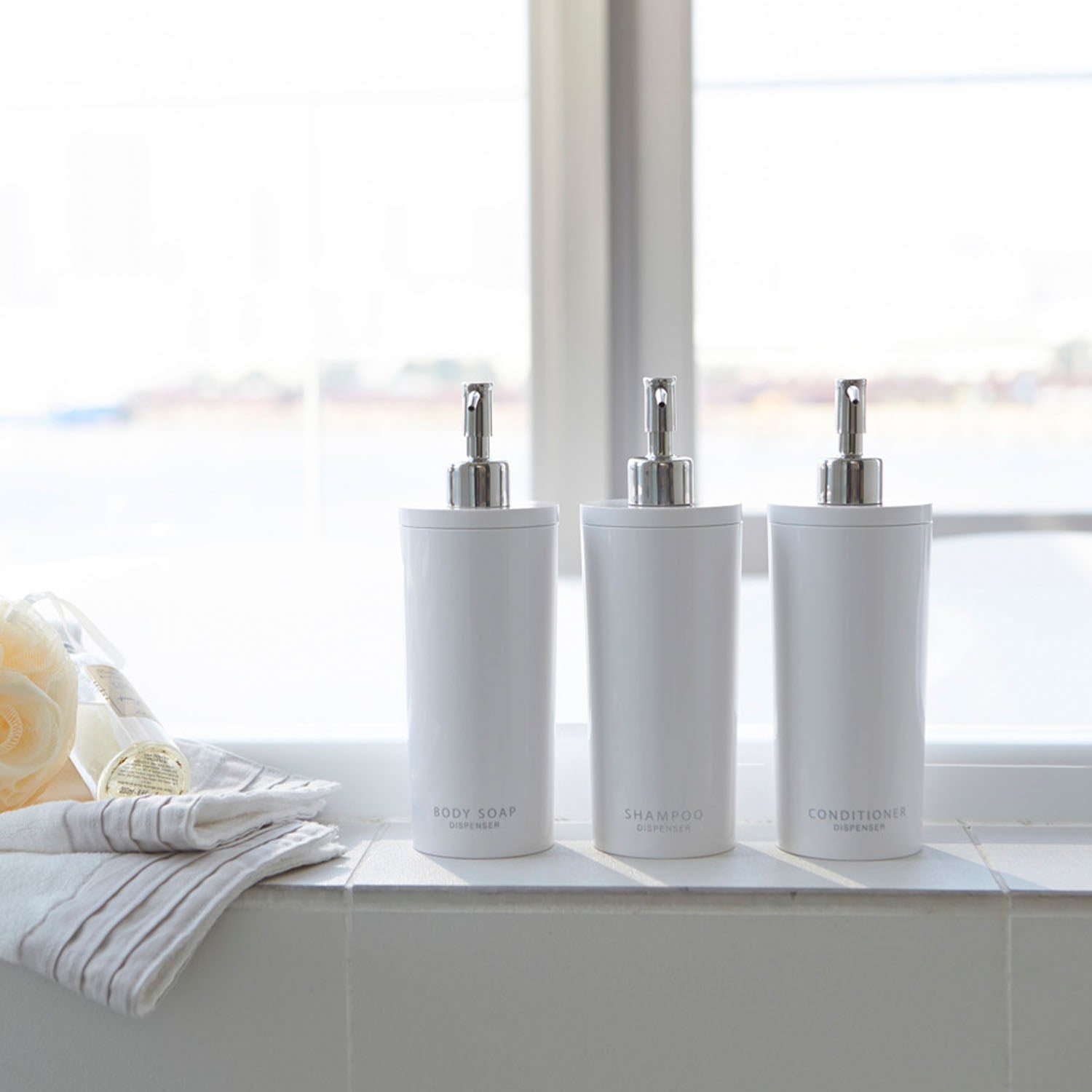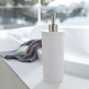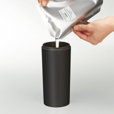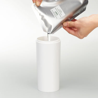 A simple and elegant dispenser bottle. The lid can be removed for easy refilling. You can also put the refill bag directly into it. The liquid gathers in the centre, making it easy to use every last drop.