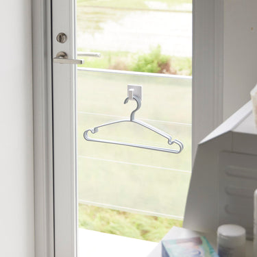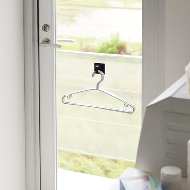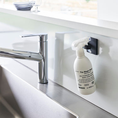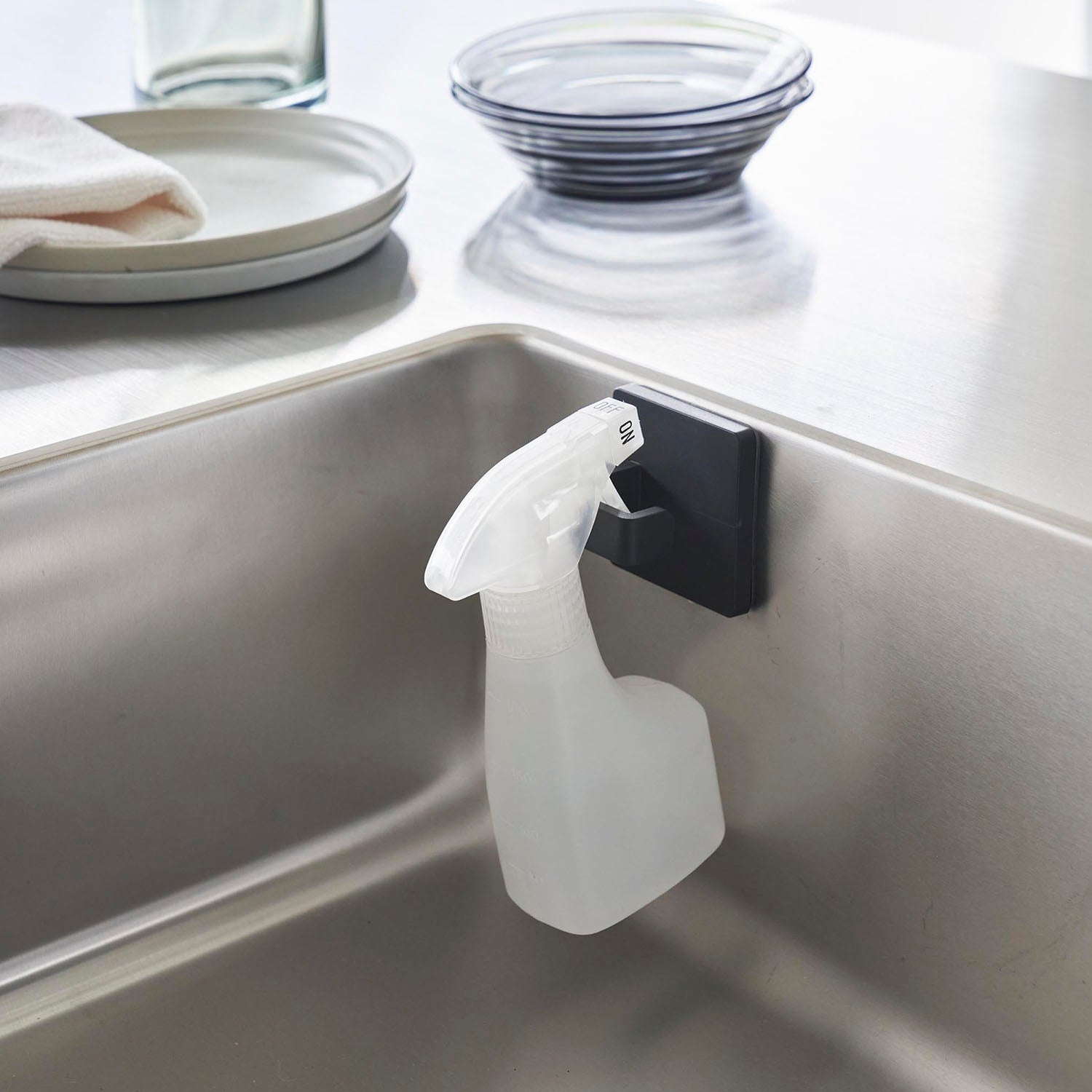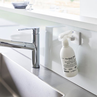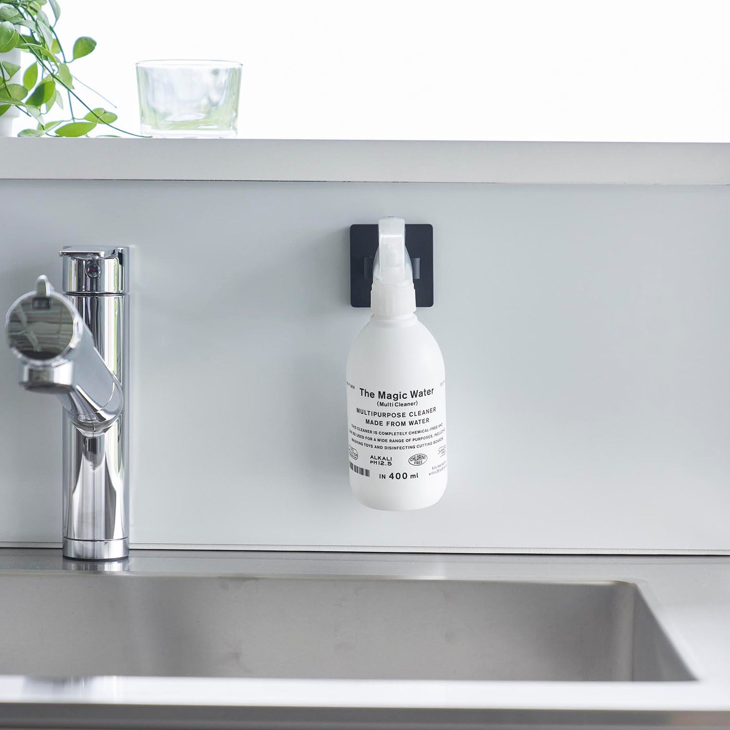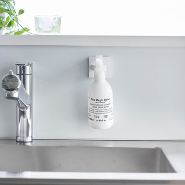 This hook can be attached using a film hook, allowing you to store sprays and hangers wherever you prefer. It's convenient to have items at your fingertips when you need them. You can store spray bottles in the kitchen or sink, keeping them off the surfaces for hygiene. You can also hang air fresheners next to the toilet, or use the hook vertically to store hangers in the laundry room or on the balcony. Installation is easy, just attach the main body to the pre-affixed film hook.
