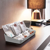 A beautifully poised storage box. Convenient for storing amenities and tea bags.