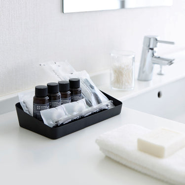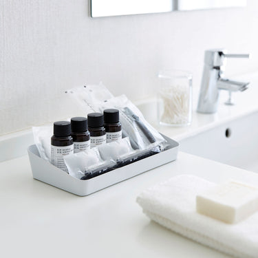 This storage box is perfect for holding amenities such as soap, shampoo, toothbrushes, hair styling tools, as well as tea sets including tea bags. Its simple and elegant style is part of its appeal. It also comes with a silicone cushion to prevent scratches on the surface where it's placed.