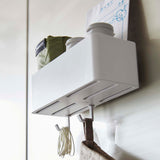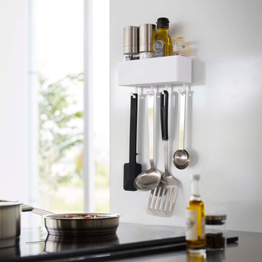 This rack can be attached to glossy walls, tiles, or glass doors, keeping it elevated for hygiene. It's incredibly versatile, perfect for storing sponges, detergent bottles, supplements, kitchen tools, and condiment bottles in the kitchen, or toothbrushes in the bathroom. The included hooks can be attached to the bottom, allowing you to hang and store kitchen tools and other items.