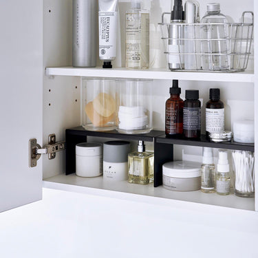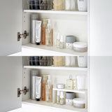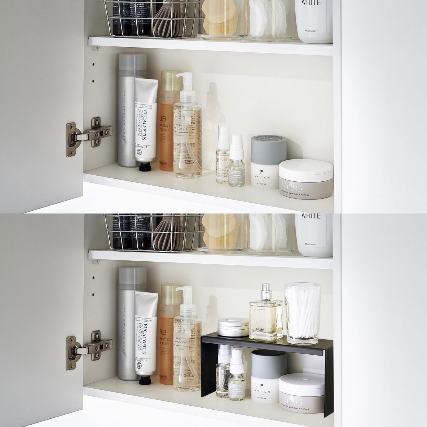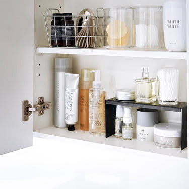 By adding shelves to your preferred locations, you can eliminate wasted space and neatly organise your skincare products. By arranging items according to their height, you can eliminate dead space and increase storage capacity. You can store small skincare items separately on the upper and lower shelves.