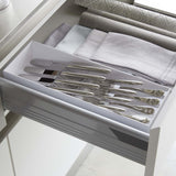 The dividers are transparent, making it easy to see the cutlery stored underneath.