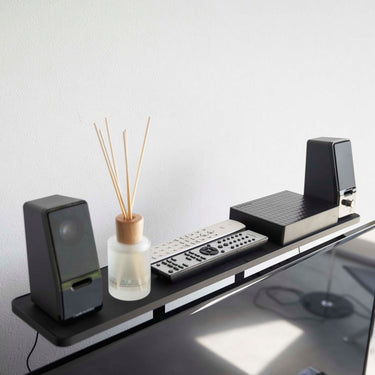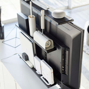 Transform the top and back of your TV into a storage space, allowing you to neatly store all your TV-related items. The top of the TV is perfect for storing items like remotes that you need to grab quickly. You can also use it as a display shelf for plants and other decor. The shelf at the back of the TV can neatly store items like routers, external HDDs, cleaning tools, and power strips, keeping them out of sight for a stylish, clutter-free look. Compatible with VESA standard screw holes on the back of flat-screen TVs for wall mounting.