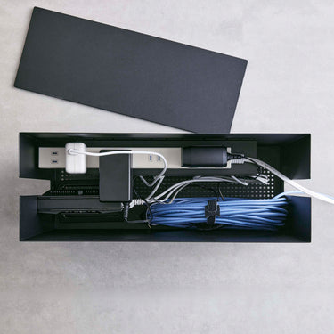 Ideal for organising around your desk. Allows for the collective storage of power strips, cords, modems, and more.