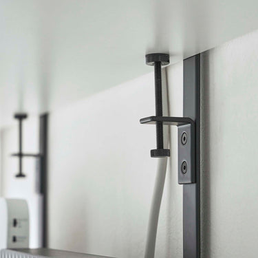 Comes with a hook to wind and store any excess cable length. It allows for easy floor cleaning by keeping your cables and router off the ground. Installation is a breeze - just clamp it onto your desk! You can securely fasten it with the adjustable screw. Comes with a hook to wind and store any excess cable length.