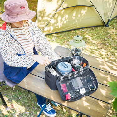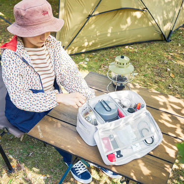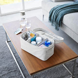 With dividers and pockets, you can sort items in detail! The large opening allows you to see everything at a glance, saving you the hassle of searching. The lid has a mesh pocket on the back, allowing you to categorise and store medicine. Thermometers and tubes can be stored upright in the eight rubber band holders on each side. The divider with a mesh pocket can be fixed in your preferred location and used to store medicine upright. (2 movable dividers with pockets included) It can also be used to store outdoor equipment and sewing tools.