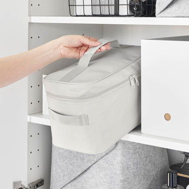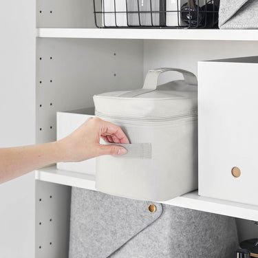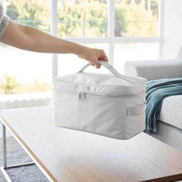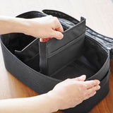 Material Main body & dividers: Polyester & Polyethylene. Handle: Polypropylene. Velcro: Polyester.