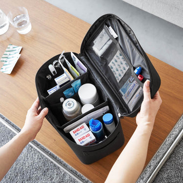 A lightweight first aid bag with exceptional storage capacity, easy to carry around.