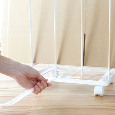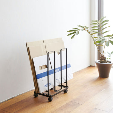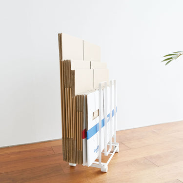 A handy cardboard stocker perfect for temporarily storing cardboard that quickly accumulates from online shopping and the like. Its slim design fits neatly into gaps in your room or entranceway.