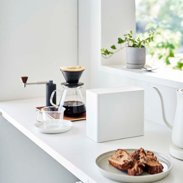 With a simple one-push valve, this coffee canister seals easily to prevent coffee degradation. The bottom shape fits perfectly with the included coffee measure! You can scoop out the coffee cleanly until the end. The angled measure spoon allows excess coffee to fall off easily, and you can measure a level scoop (about 10g) even without a leveling stick. All parts can be disassembled and washed.