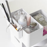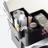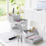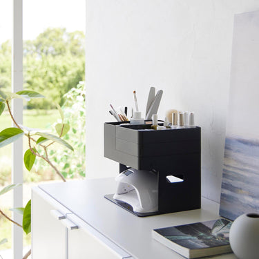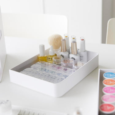 Internal Size | Main body & bottle storage section: W9.5×D20×H10.8cm. Main body & tray section: W15×D20×H3.6cm. Main body & nail light storage section: W25×D21×H12cm. Main body & nail light storage section slit hole: W22×H5.8cm. Tray (per piece): W15×D20×H3.4cm. Storage pocket (per compartment): W6.5×D2.5×H6cm. |