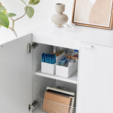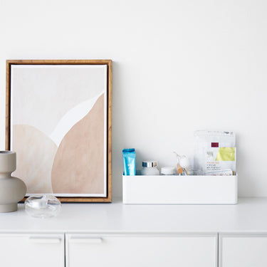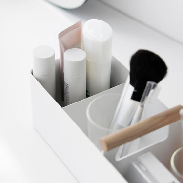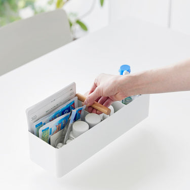 This is a handy steel box for storing small items, featuring adjustable dividers with magnets for easy partitioning. The stylish combination of warm natural wood handles and steel adds a touch of class. The dividers allow for detailed categorisation, making it ideal for storing items such as medicine, hygiene products, and makeup. The handle makes it easy to carry, and its slim shape allows for neat storage in cupboards and the like.