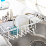 Extendable to fit sink interiors of approximately 37cm to 47cm. It drains well and provides ample storage for frequently used dishes and cooking utensils.