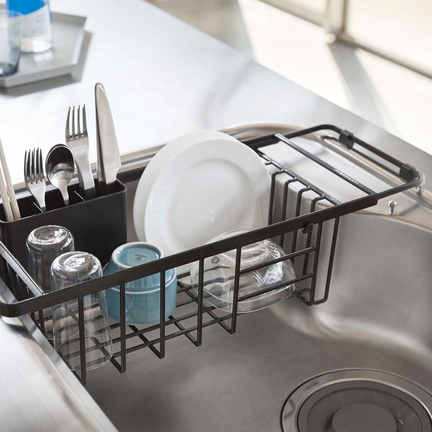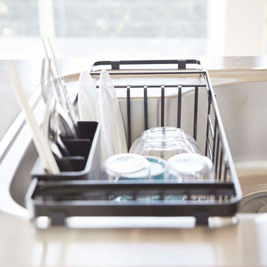A dish drainer that expands to fit various sink sizes