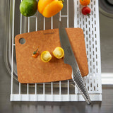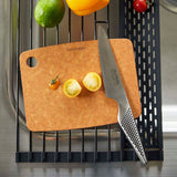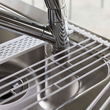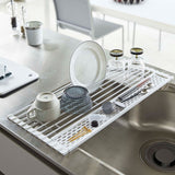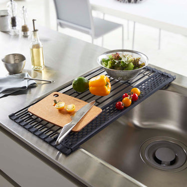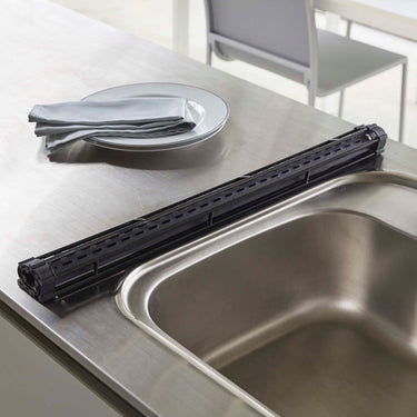 A handy foldable dish drainer that can be rolled up for space-saving storage