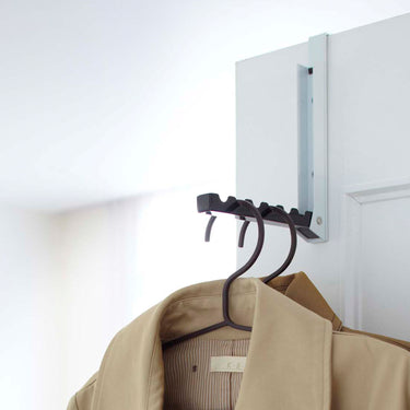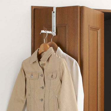 This door hanger can be easily installed on folding doors. When not in use, it can be folded away so as not to interfere with the opening and closing of the door. With six hooks, it's designed to prevent clothes from interfering with each other. It's also handy for indoor drying of laundry.