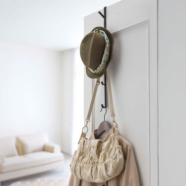 Make efficient use of your door as a handy storage space. Hanging hats and accessories makes getting ready to go out a breeze. The lowest hook is at a height that children can reach, perfect for hanging their coats. The upper hooks are handy for hanging adult hats and bags.