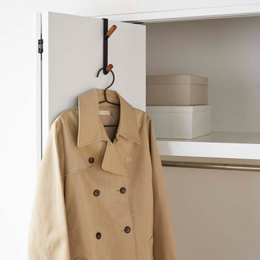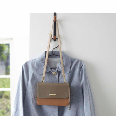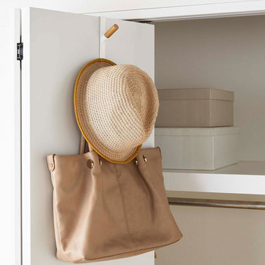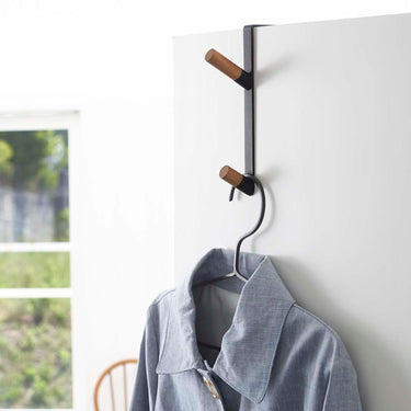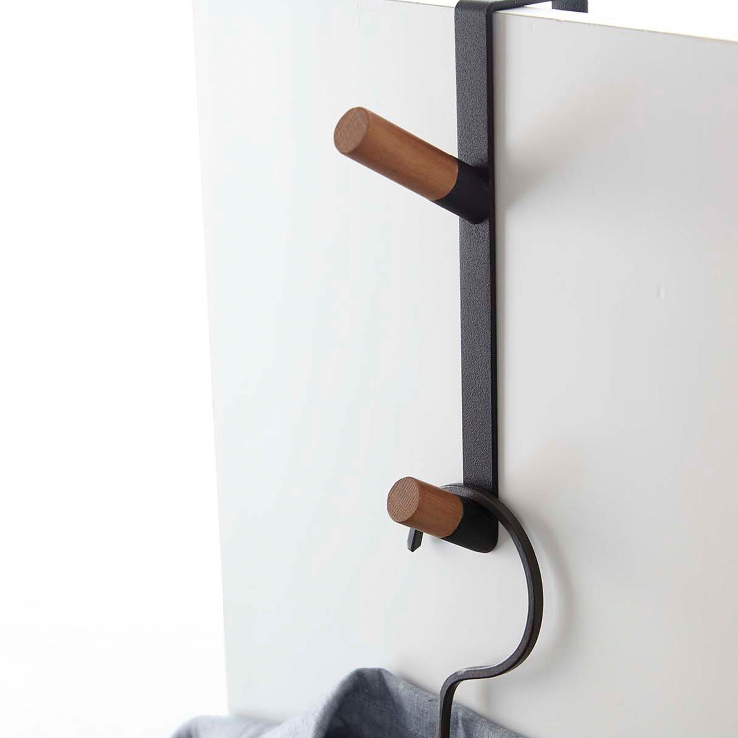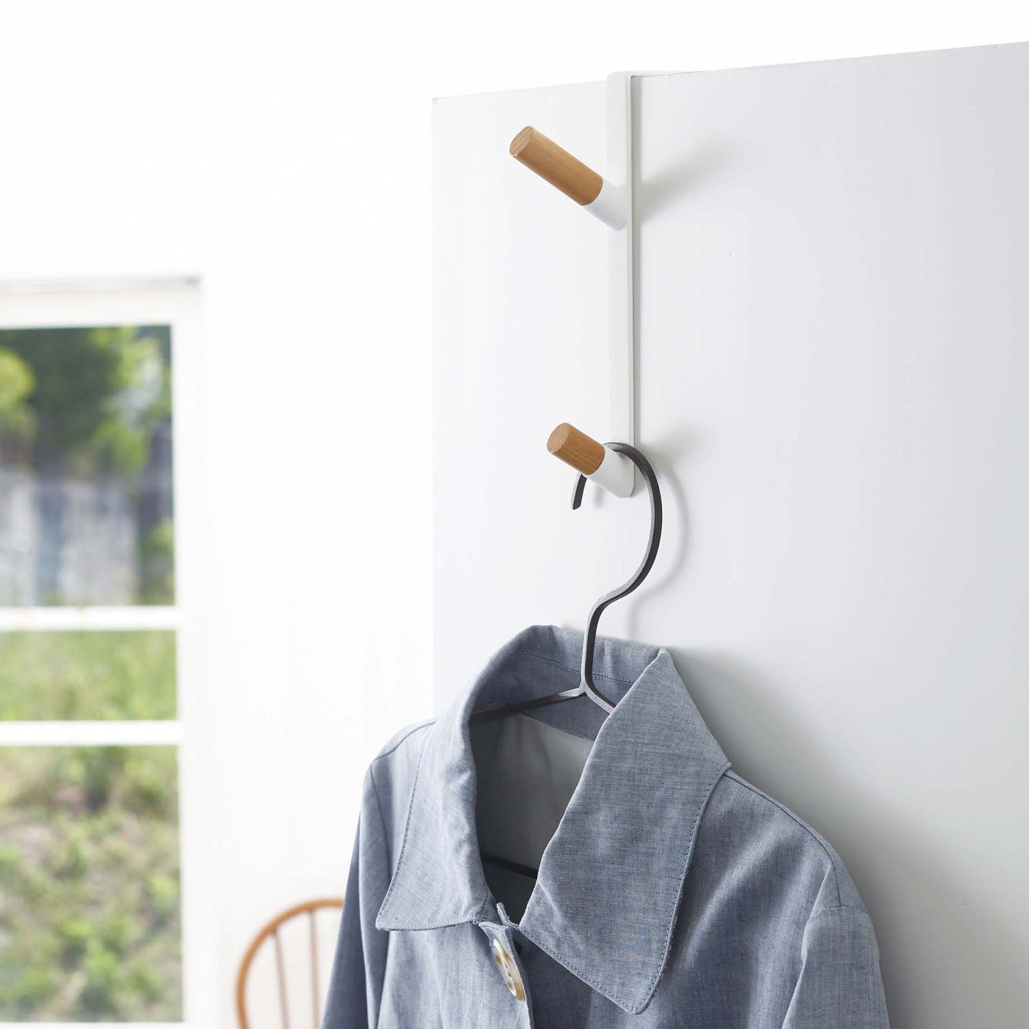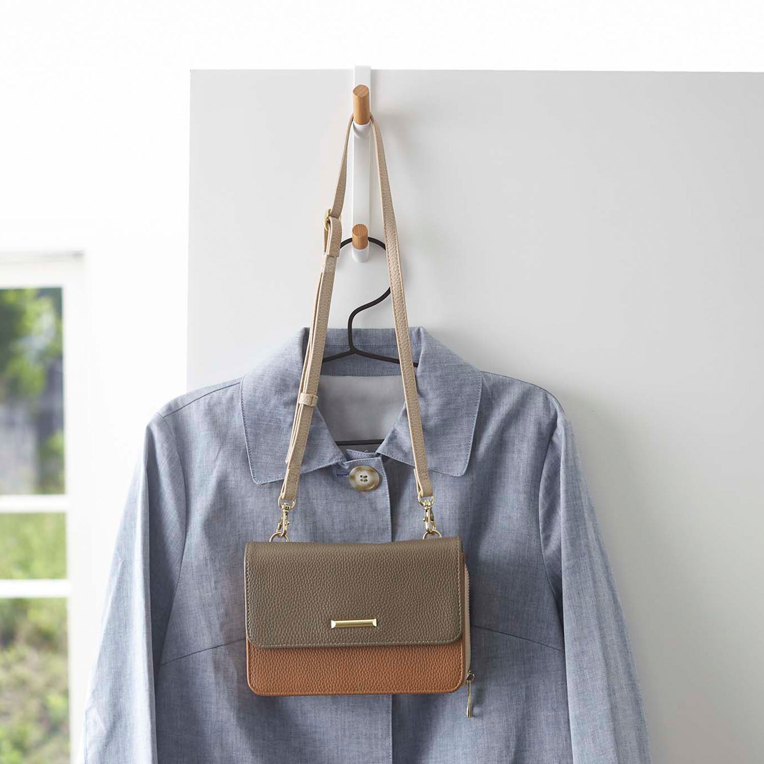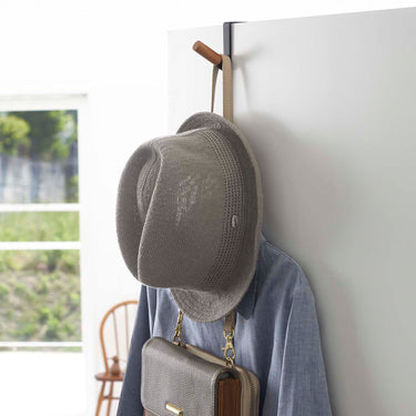 Easily attachable to doors and folding doors! This door hanger boasts a sophisticated wooden texture. Its compact design won't get in the way even when left attached.