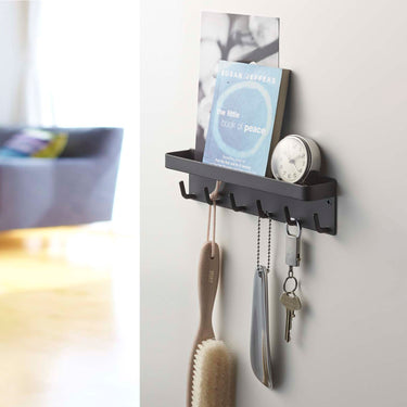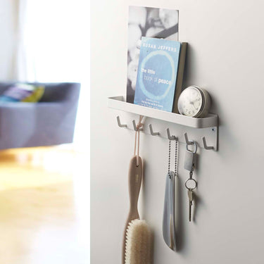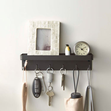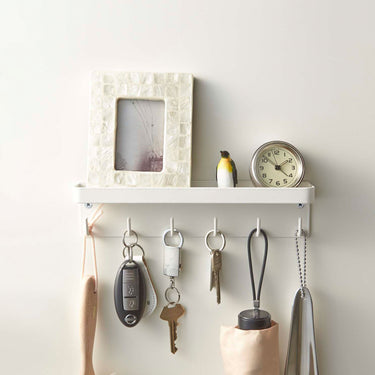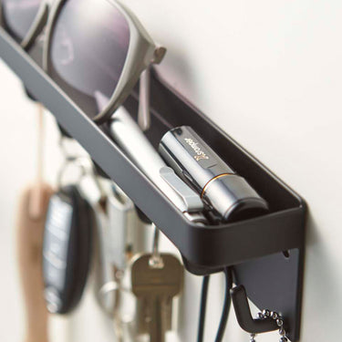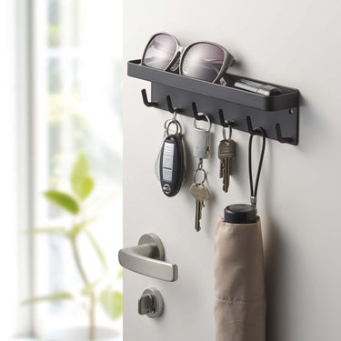 Easily attachable to your front door with a magnet, this key hook can hold up to six keys, solving the problem of where to put them. It's also perfect for storing small items around the entrance, such as shoe horns or folding umbrellas. The tray is handy for keeping items like stamps, pens, or sunglasses. If you use the included wood screws, you can also attach it to the wall, making it ideal for storage in the living room or for displaying small items.