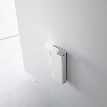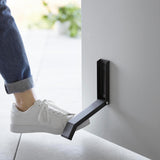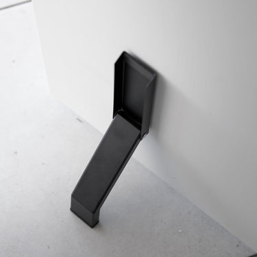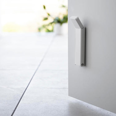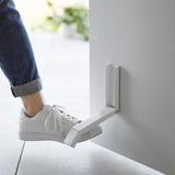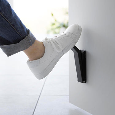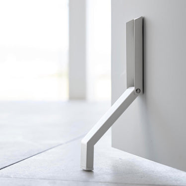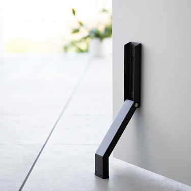 This is a simple and functional door stopper that can be quickly deployed and put away. It can be operated with one foot while standing, making it convenient even when both hands are occupied with carrying items. It has a hook, allowing for easy lifting and lowering with your foot. Easily attachable to steel entrance doors with a powerful magnet! When not in use, it can be folded up for slim storage. Its sleek design won't obstruct your entrance. The installation surface is firmly secured with a silicone non-slip.