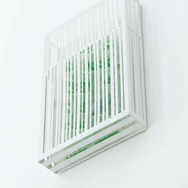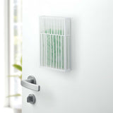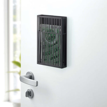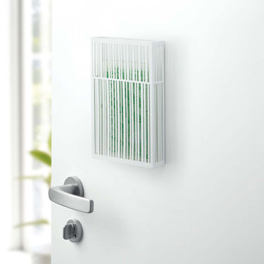 This is a cover that allows you to discreetly install your insect repellent plate by simply attaching it to your front door or similar surfaces using magnets. It doesn't cover the bottom, ensuring it doesn't interfere with the effectiveness of the repellent plate. Installation is a breeze - just insert the repellent plate from the top. If you're looking to install it in a place where magnets won't work, such as a clothesline, you can use the included string.