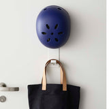 This hook, which can be easily installed on entrance doors and such with magnets, can store two children's helmets that you may struggle to find a place for. It's also perfect for temporarily hanging wet raincoats, storing hats and sub-bags, or keeping dog leads and other walk-time items. It can also be attached to walls with the included wood screws.