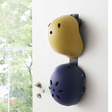 Easily attachable to any entrance door with a magnet. Can store two children's helmets.