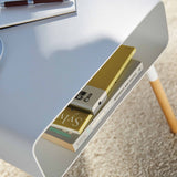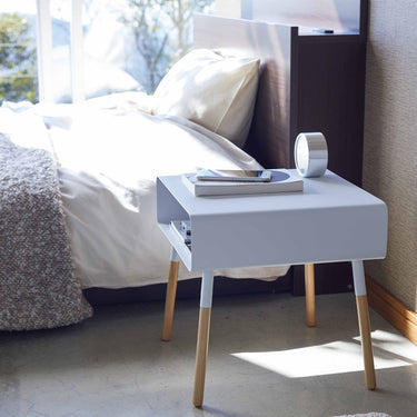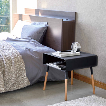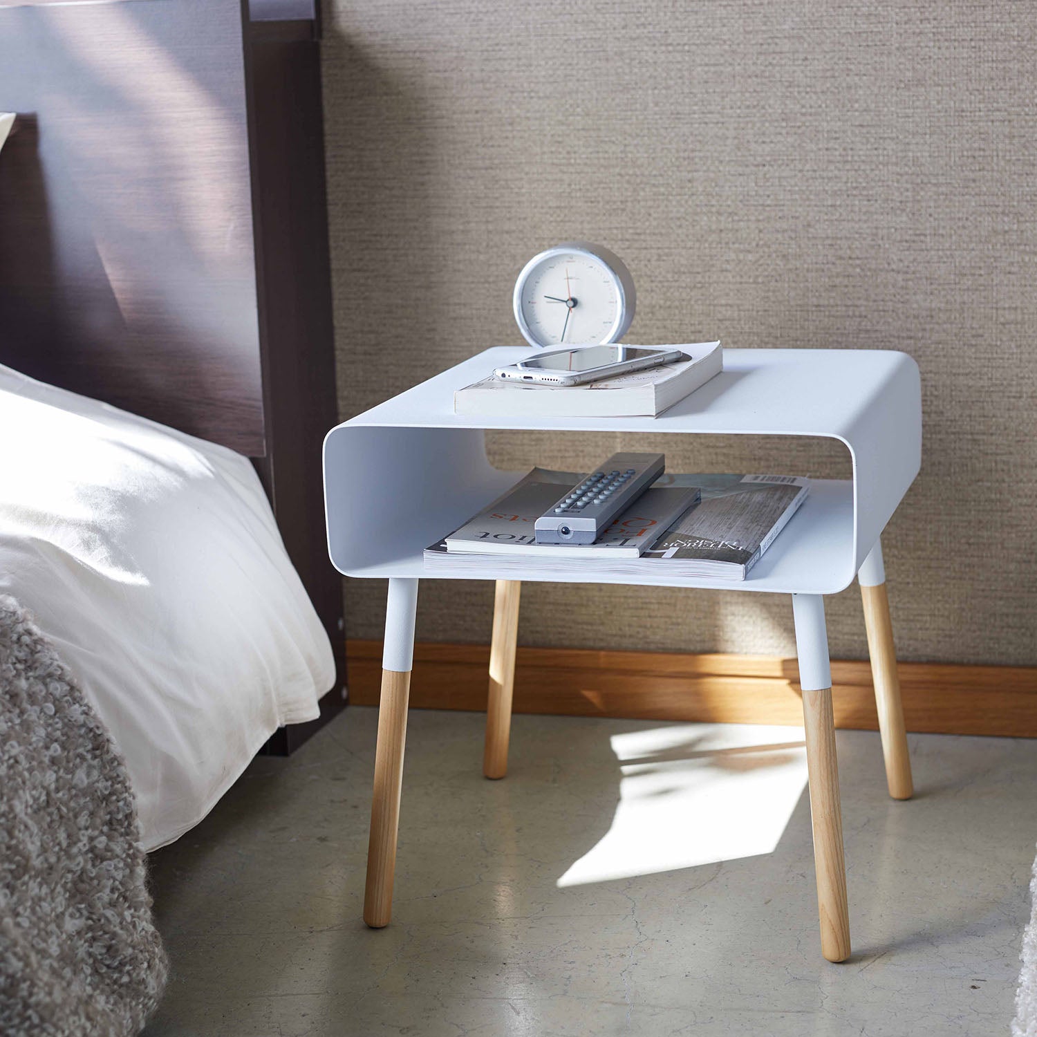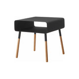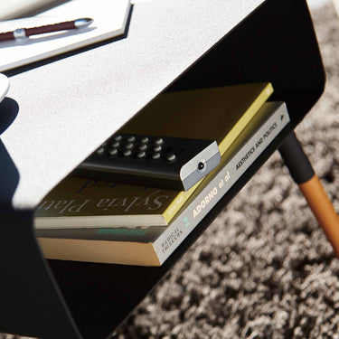 Material | Tabletop: Powder-coated steel, Legs: Natural wood |