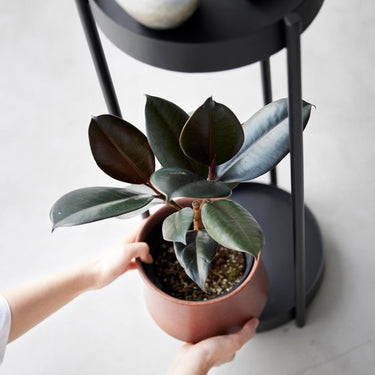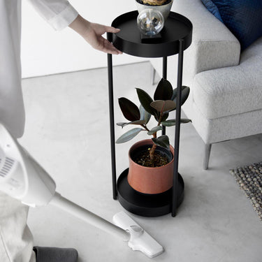 This planter stand with convenient casters is perfect for moving to sunny spots or for cleaning. Even small plants can be elevated, allowing you to create a sense of rhythm in your interior with different heights. The design features three support poles, making it easy to insert and remove plants and take care of them. It can also be used as a side table next to your sofa or bed, providing a handy spot for your smartphone. The smooth-rolling casters make moving a breeze, and the simple design hides the casters for a sleek look.