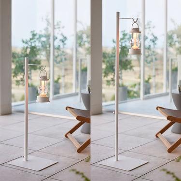 A lantern stand designed to blend with your interior, adding a touch of charm to your balcony or indoor space.