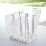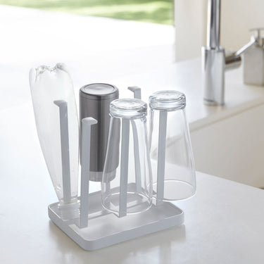 Equipped with non-slip caps, you can stand and dry your glasses without scratching them. It comes with a drip tray, making it possible to place it around your kitchen counter or sink. Its compact size means it won't take up much space. The drip tray is removable for easy cleaning. It can also be used to drain water from items like plastic bottles and food trays. Additionally, it can be used as a stand for cooking utensils such as pot lids and chopping boards.