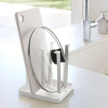 Also recommended as a stand for cutting boards and pot lids that are difficult to store.